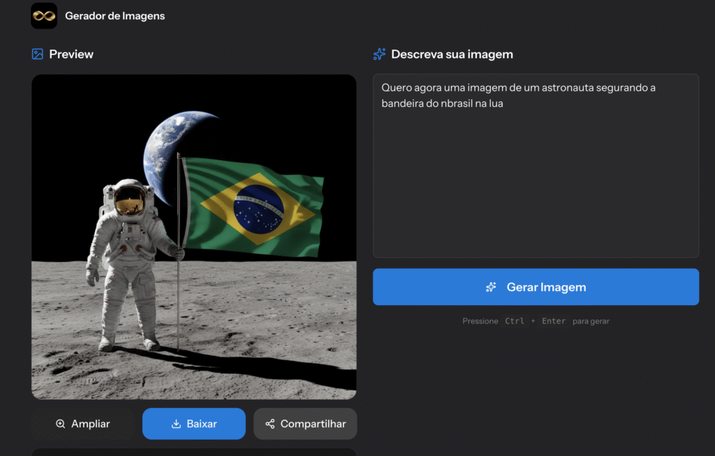 Gere imagens infinitas para os seus produtos, pode fazer logo, imagens, agentes, pessoas, tudo que você imaginar você pode criar com o gerador de imagens